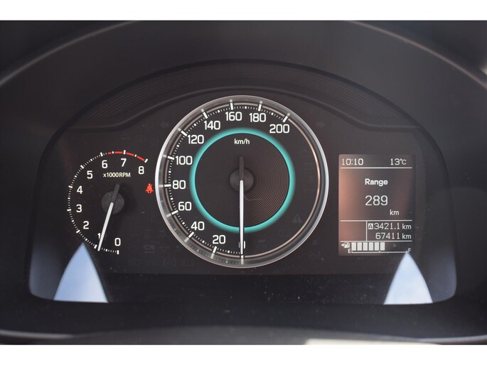 - Info-display, geïntegreerd in dashboard: digitale klok, brandstofverbruik (Actueel en Gemiddeld), afstand tot lege brandstoftank en buitentemperatuurmeter