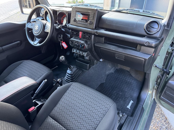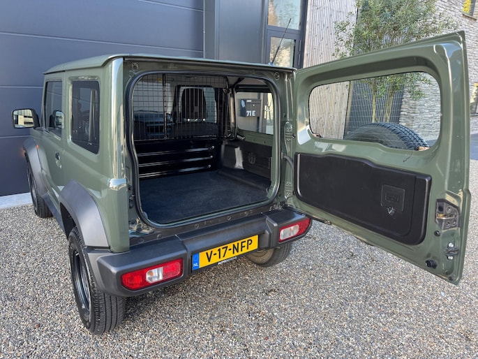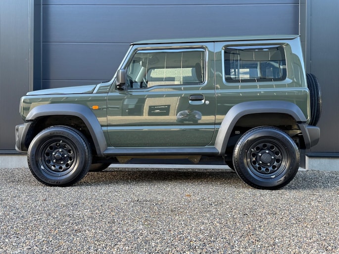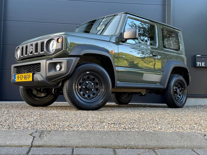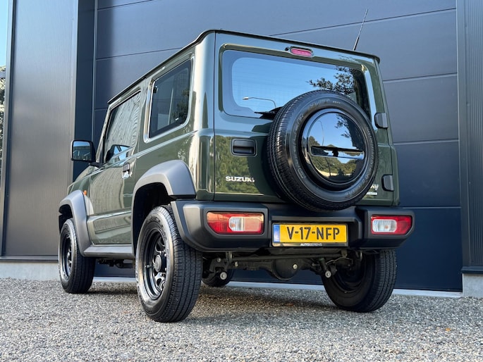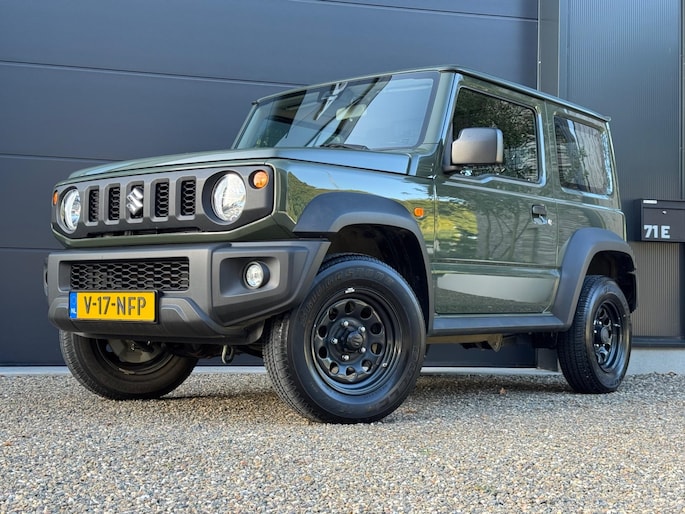Een Suzuki Jimny zoals hij hoort te zijn in de mooie groene kleur 'Verde Jungle'. Grijs kenteken, marge (komt dus geen btw meer bij).