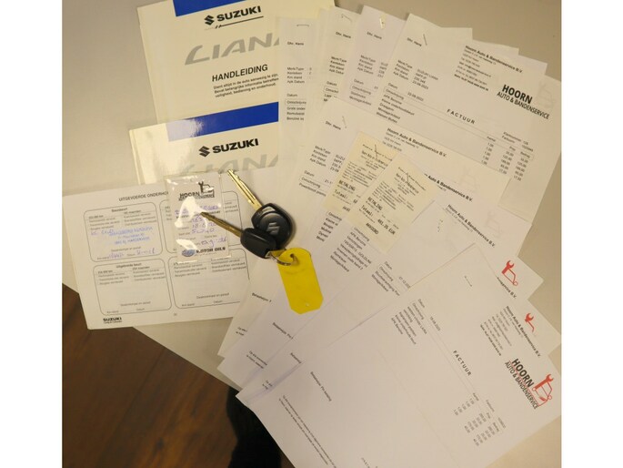 Bovag Vakgarage Stroet in Zwaag (gem.Hoorn) biedt u aan: Van 2e eigenaar deze leuke en zeer goed onderhouden Suzuki Liana 1.6 in royale Exclusive uitvoering. Alle onderhoudsfacturen en het boekje is aanwezig. Wij hebben de nette Liana nu volledig gecontroleerd, de airco service uitgevoerd en de APK is tot 10-12-2026. Onlangs heeft de auto nog haar onderhoudsbeurt gehad. Deze keurige Liana is voorzien van o.a. airco, lichtmetalen velgen, centrale portiervergrendeling op afstand, dubbele sleutels, elektrische ramen voor en achter, mistlampen voor, in hoogte verstelbaar stuur, in hoogte verstelbare bestuurdersstoel, elektrische buitenspiegels, getinte ramen, deelbare achterbank, isofix, hoofdsteunen, airbags, originele cd audio, complete reiniging van in- en exterieur enz. De All-in prijs is € 2.999,= en de APK is tot 10-12-2026