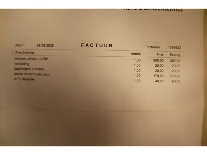 - alle onderhoudsfacturen aanwezig