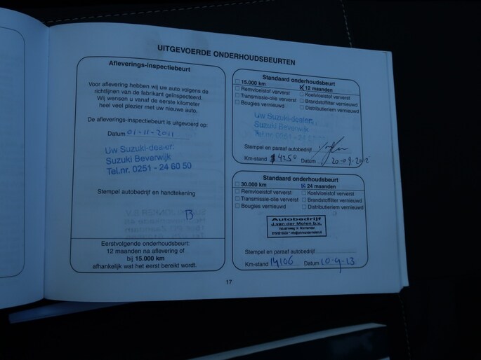 Aanvullende garantielabels: Suzuki Select Occasion (12 maanden), Vakgarant Premium Occasion Garantie (12 maanden)