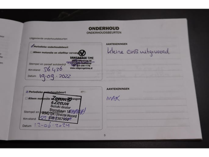 Onderhoudsboekjes: Aanwezig