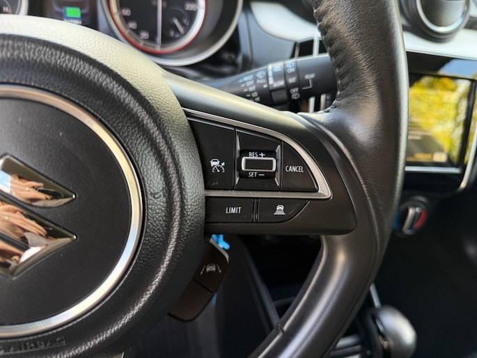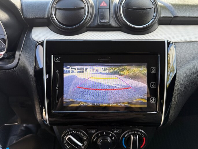 De achteruitrijcamera levert eersteklas parkeerservice. U weet precies hoeveel ruimte u nog heeft, in beeld en geluid. Met adaptive cruise control houdt de auto zelfstandig afstand tot uw voorligger. Een veiligheidsverhogende optie waarmee u comfortabel onderweg bent. U bedient het audiosysteem met dab-radio via knoppen op het stuur. Zo kunt u steeds uw aandacht gericht houden op de weg. Aan boord van deze Suzuki Swift is een achteropkomend verkeer waarschuwing voor extra veiligheid. U vindt in deze auto ook airconditioning. Deze Suzuki is voorzien van lederen stuur, bagage afdekhoes en boordcomputer.