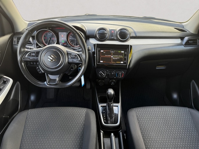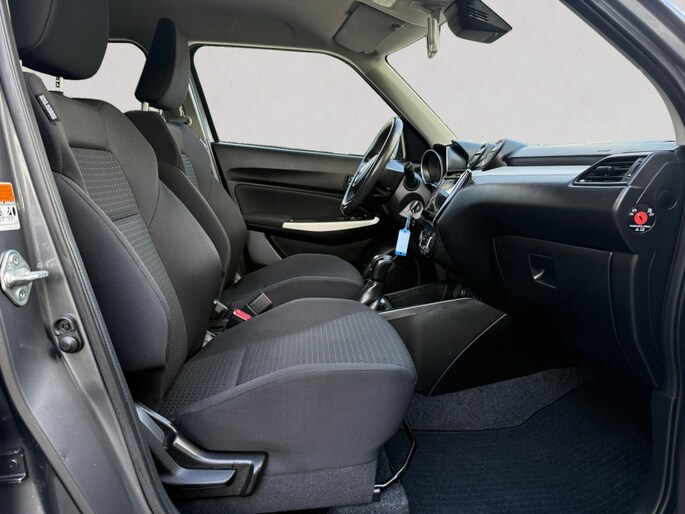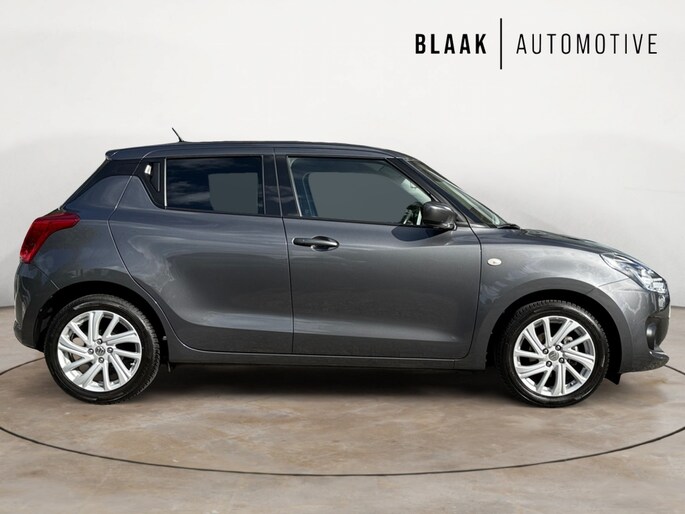 De achteruitrijcamera levert eersteklas parkeerservice. U weet precies hoeveel ruimte u nog heeft, in beeld en geluid. Met adaptive cruise control houdt de auto zelfstandig afstand tot uw voorligger. Een veiligheidsverhogende optie waarmee u comfortabel onderweg bent. U bedient het audiosysteem met dab-radio via knoppen op het stuur. Zo kunt u steeds uw aandacht gericht houden op de weg. Aan boord van deze Suzuki Swift is een achteropkomend verkeer waarschuwing voor extra veiligheid. U vindt in deze auto ook airconditioning. Deze Suzuki is voorzien van lederen stuur, bagage afdekhoes en boordcomputer.