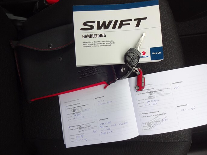Mooie rood metallic Suzuki Swift van 2020 met weinig kilometers. Door ons nieuw geleverd, van eerste eigenaar en altijd bij ons onderhouden. Inclusief Suzuki Mobiliteits Service. APK tot 03-11-2027.