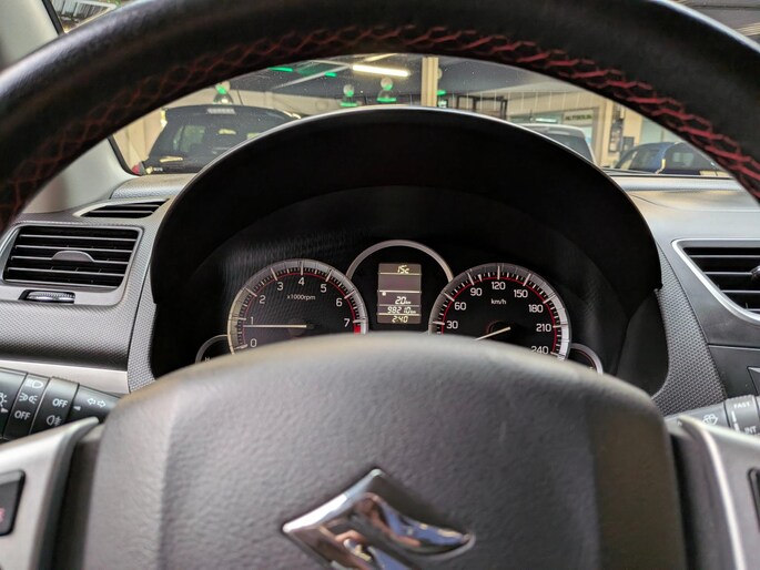 Deze Suzuki is voorzien van knoppen op het stuur om het navigatiesysteem en het audiosysteem te bedienen. Bij de luxe van deze auto hoort ook automatische airconditioning. De aanwezige parkeersensoren zijn de ultieme hulp om te laten weten hoeveel ruimte er nog is om te manoeuvreren. Voorzien van cruise control, dus vriendelijk voor de inzittenden én de benzinetank. De sensor van de keyless entry herkent u van dichtbij en ontgrendelt de auto alvast voor u. Natuurlijk behoren lederen stuur, centrale deurvergrendeling met afstandsbediening en boordcomputer ook tot de uitrusting van deze complete auto.