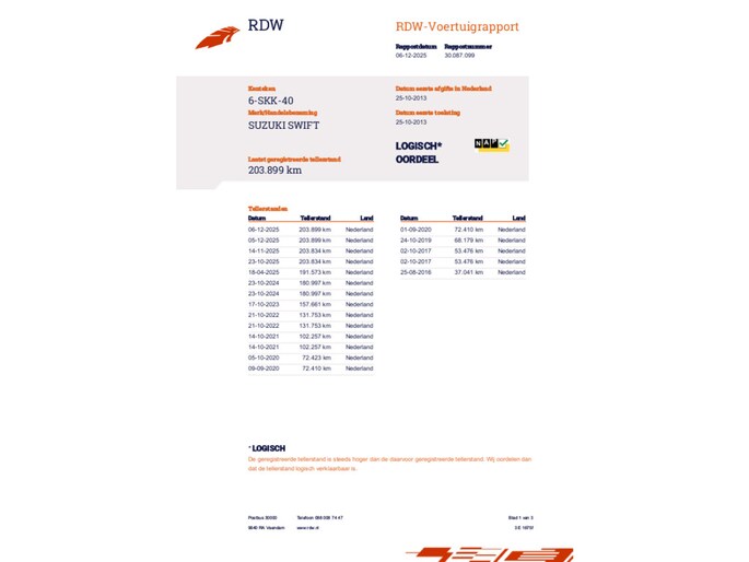 Kilometerstand gecontroleerd