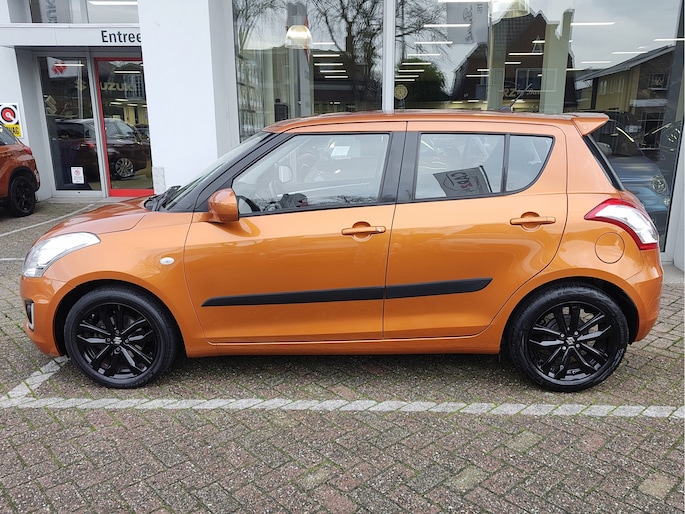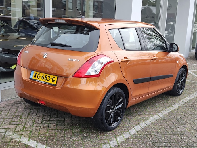 Leuke en lekker complete Suzuki Swift, de pittige en sportieve stadsauto van Suzuki. Luxe Bandit-uitvoering, destijds een uitloopmodel voor dit type Swift. Deze luxe variant bood de auto o.a. een ijskoude airco, cruise control, elektrische ramen, een lederen stuur en nog veel meer. Dit exemplaar is goed onderhouden, en ziet er nog prachtig uit. Dat mag ook wel, met deze kilometerstand. Het betreft een 5-deurs uitvoering. Kilometerstand helemaal traceerbaar, NAP is aanwezig, de auto is nieuw bij ons geleverd en altijd hier onderhouden. Er zit een goed werkend airconditionings-systeem in de auto! Incl. beurt, nieuwe APK, volle tank en 1 jaar BOVAG garantie!