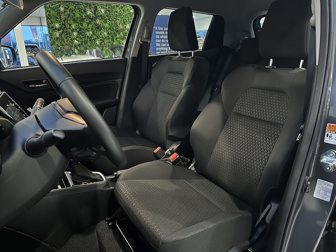 Het interieur van deze Suzuki Swift is even luxe als praktisch. De bestuurdersstoel is in hoogte verstelbaar, waardoor je altijd de ideale rijpositie kunt vinden voor een comfortabele en ontspannen rit. De metaalkleur van de carrosserie geeft de auto een trendy uitstraling en laat zien dat deze Swift tot in de kleinste details is afgewerkt.