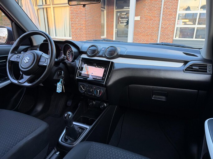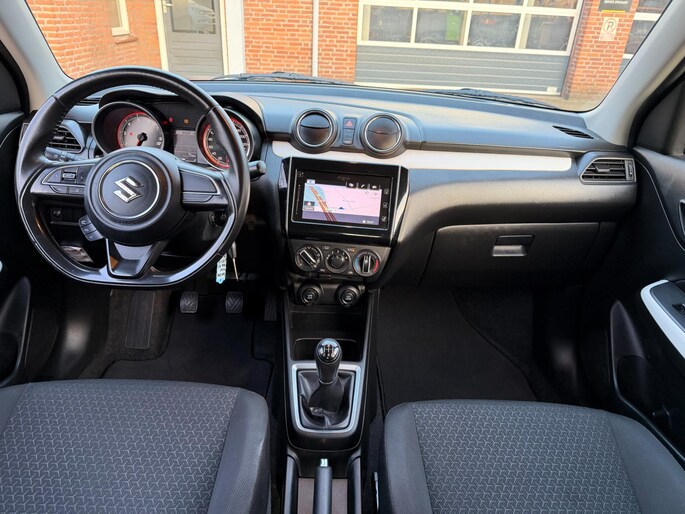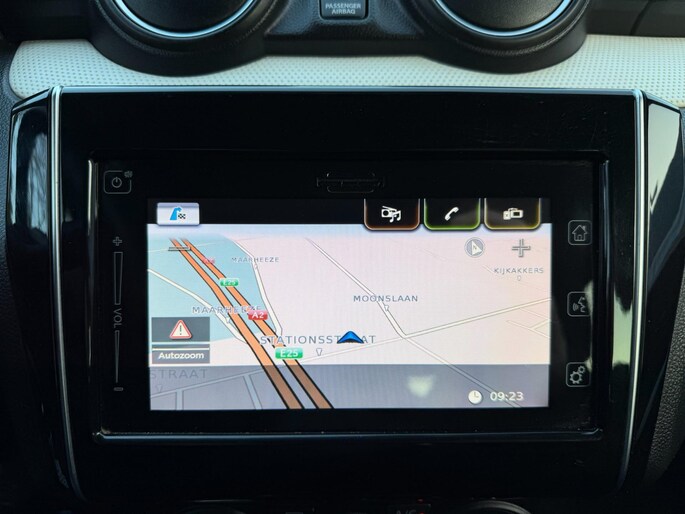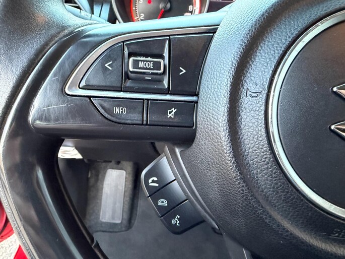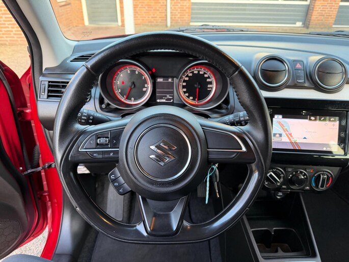 Kommaar-kommaar-kommaar, aldus de achteruitrijcamera. Iedere centimeter vrije ruimte komt haarscherp in beeld. Schadevrij inparkeren maar! Met de knoppen op het stuur regelt u het audiosysteem en het navigatiesysteem, terwijl u uw blik op de weg gericht houdt. De audio-installatie biedt daarbij glasheldere ontvangst dankzij DAB-ontvangst. En natuurlijk is er ook gedacht aan airconditioning. De Suzuki is standaard voorzien van: lederen stuur, centrale deurvergrendeling met afstandsbediening, bagage afdekhoes en boordcomputer.