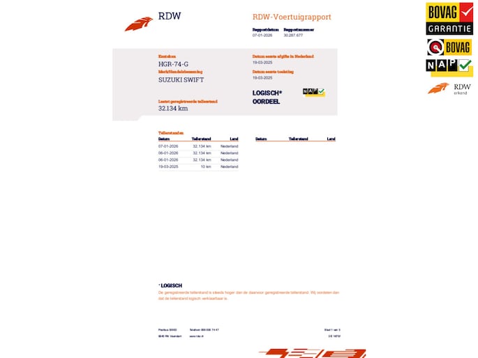 Kilometerstand gecontroleerd