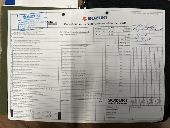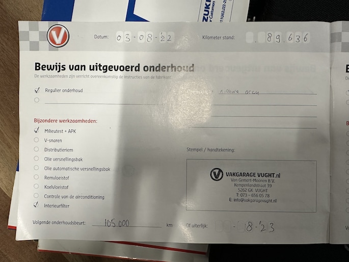 Onderhoudsboekjes: Aanwezig