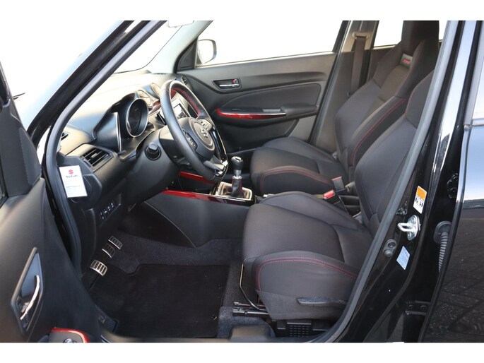 Als geen ander munten de Japanse autofabrikanten uit in de toepassing van hoogwaardige materialen en intelligente systemen. Dat merkt u ook bij een auto als deze Suzuki Swift. De aandrijving van deze Suzuki wordt verzorgd door een viercilinder motor en een handgeschakelde zesversnellingsbak. Tijdens gure dagen is het prettig zitten in de verwarmbare voorstoelen. Goeie looks? Jazeker! Maar de sportstoelen zorgen ook voor een goed gesteunde en comfortabele zit. Bij de zeer complete uitrusting van deze auto behoren ook 17 inch lichtmetalen velgen, LED koplampen, dakspoiler, extra getint glas, in delen neerklapbare achterbank en LED-achterlichten.