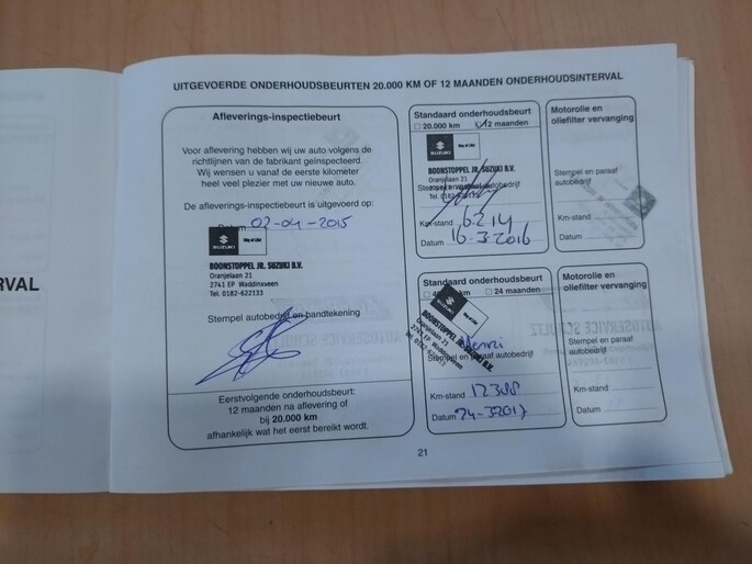 Onderhoudsboekjes: Aanwezig