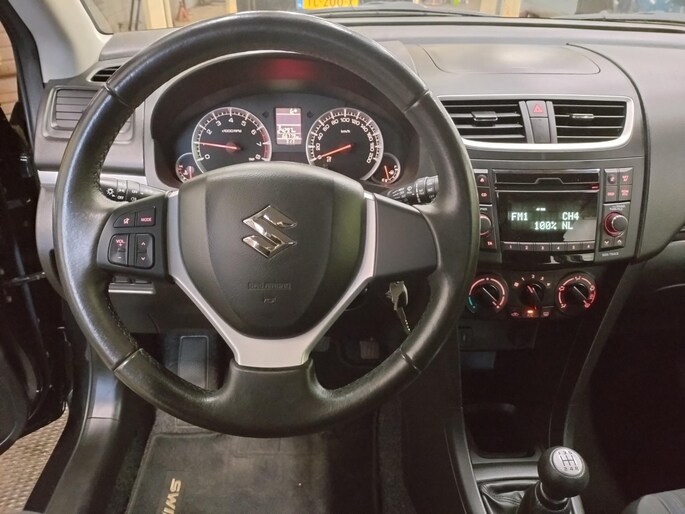Deze Swift is voorzien van talrijke comfort- en veiligheidsopties. Denk aan elektrisch verstel- en verwarmbare buitenspiegels, een in hoogte verstelbare bestuurdersstoel, centrale vergrendeling met afstandsbediening en een multifunctioneel stuur met leder bekleding. Bovendien zorgen het antiblokkeersysteem, de airbags (voor, zij, knie en hoofd) en het elektronisch stabiliteitsprogramma voor complete gemoedsrust onderweg, tevens voorzien van een afneembare trekhaak.