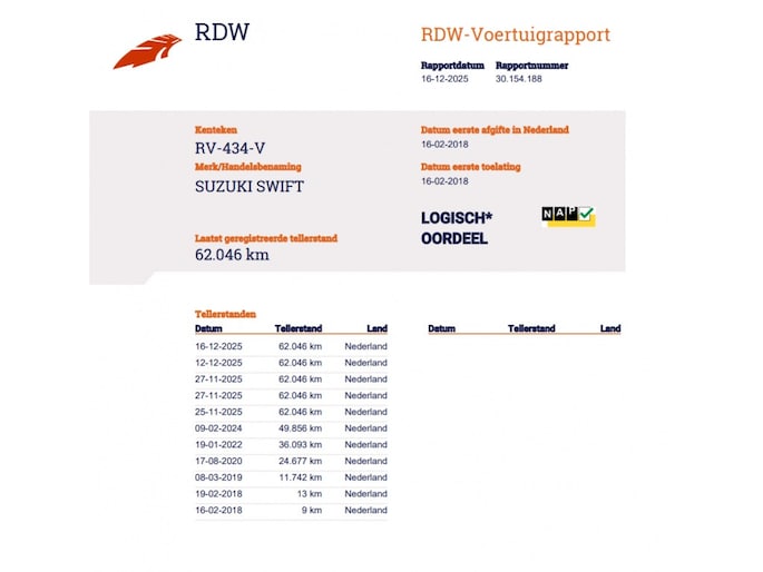 Kilometerstand gecontroleerd