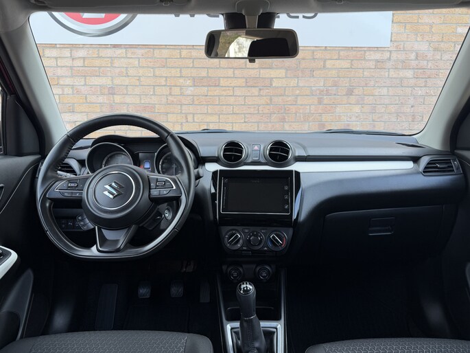 Deze Suzuki Swift is ontwikkeld om uw leven gemakkelijker te maken. En comfortabeler. En veiliger. Kijk maar naar zijn ruimtelijke interieur, zijn stijlvol gelijnde carrosserie en zijn krachtige motor. De motor is zuinig maar pittig, en maakt een vlotte rijstijl mogelijk. De verwarmbare voorstoelen benadrukken nog maar eens dat we hier te maken hebben met een regelrechte verwenauto voor bestuurder en bijrijder. U wordt in deze auto ook getrakteerd op 16 inch lichtmetalen velgen, LED koplampen, donker getint glas achter, in delen neerklapbare achterbank en LED-achterlichten.