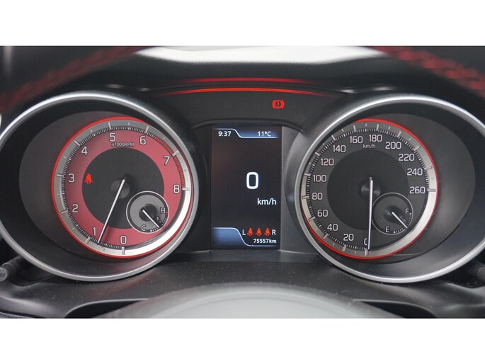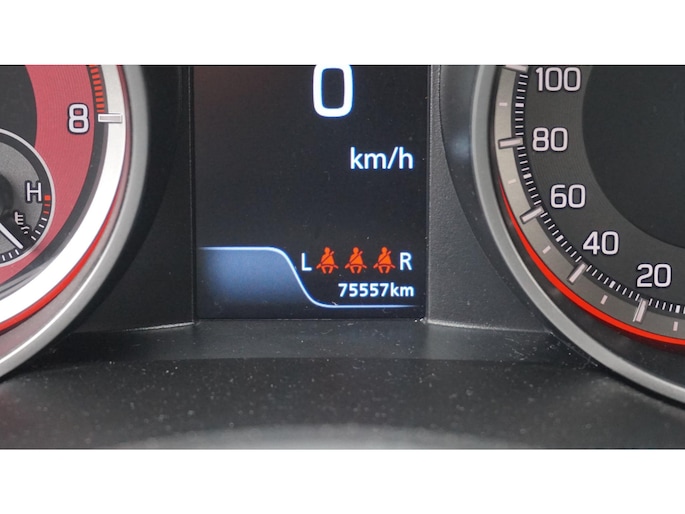 Ook achter de auto geen verrassingen bij het inparkeren. Daarvoor zorgt de achteruitrijcamera. Adaptive cruise control houdt de ingestelde snelheid vast en houdt automatisch afstand tot uw voorligger. Het full map navigatiesysteem geeft duidelijke instructies. Zo komt u veilig en vlot aan waar u moet zijn. Onbedoeld snijden na het inhalen gebeurt niet meer, dankzij de achteropkomend verkeer waarschuwing. Ook is de auto voorzien van automatische airconditioning. Ook is de Suzuki uitgerust met: DAB ontvangst, keyless entry, lederen stuur, centrale deurvergrendeling met afstandsbediening, bagage afdekhoes en boordcomputer.