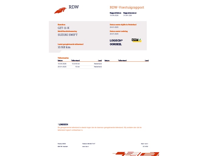 Kilometerstand gecontroleerd