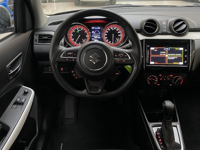 De hybride technologie combineert het beste van twee werelden: zuinigheid en kracht. Hierdoor rijdt de Suzuki Swift niet alleen soepel, maar ook erg efficiënt. De automaat zorgt ervoor dat schakelen moeiteloos verloopt, waardoor je ontspannen onderweg bent.