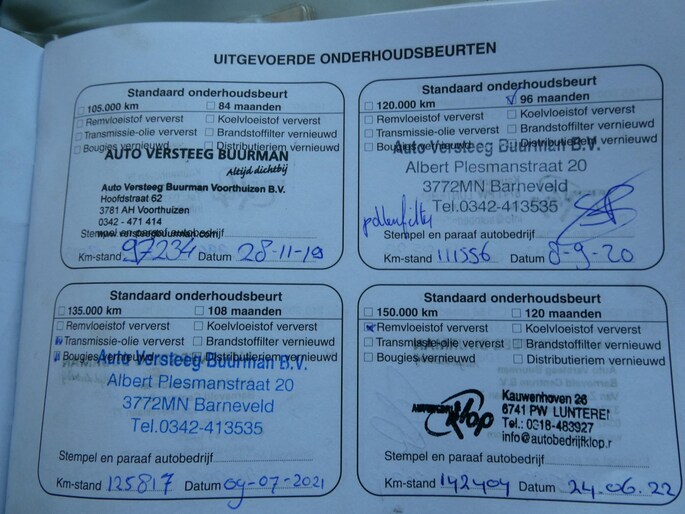 Onderhoudsboekjes: Aanwezig