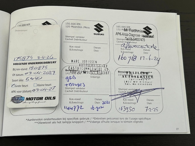 - Onderhoudsstempels aanwezig