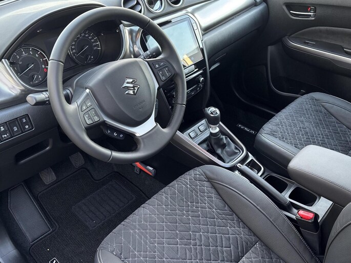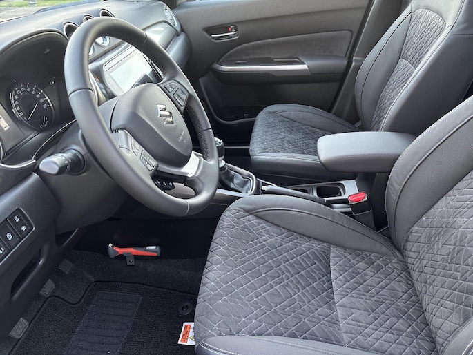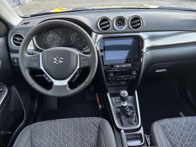 Met een auto als deze Suzuki Vitara komt u absoluut goed voor de dag. De aandrijving komt voor rekening van een benzinemotor en een handgeschakelde zesversnellingsbak. Op koude en donkere dagen zijn de verwarmbare voorstoelen een uitkomst. Tot de uitrusting van deze Suzuki behoren ook 17 inch lichtmetalen velgen, LED koplampen, extra getint glas, in delen neerklapbare achterbank, LED-achterlichten en snelheidsafhankelijke stuurbekrachtiging.