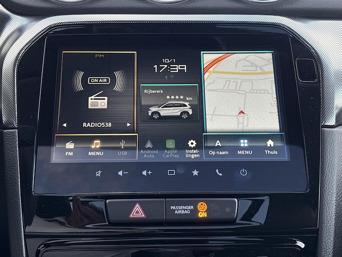 Geavanceerde systemen kunnen tijdens de rit bepaalde taken van u overnemen. Zo kijken er als het ware steeds extra ogen met u mee, zodat u tijdig kunt reageren op noodsituaties. Een belangrijke bijdrage aan de veiligheid onderweg levert de verkeersbord-detectie in deze Suzuki. Het Lane-keeping systeem zorgt dat u mooi binnen de lijntjes blijft. Ongemerkt buiten de rijstrook komen is er niet meer bij. Deze Suzuki Vitara blijft altijd alert. Zo wordt gebruik gemaakt van forward collision warning. Bij het mogelijke risico op een aanrijding met een voertuig voor u, slaat het systeem alarm. Ook helpen het dodehoekdetectie, hill hold functie, brake assist, vermoeidheidsherkenning en bandenspanningcontrolesysteem, uw rit tot een veilige rit te maken.