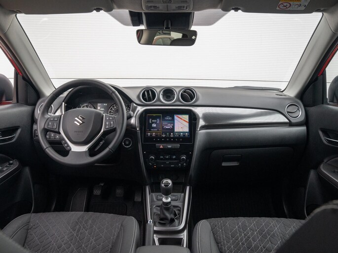 Pragmatisch en veilig als deze auto is, beschikt hij over diverse veiligheidssystemen. Een belangrijke bijdrage aan de veiligheid onderweg levert de verkeersbord-detectie in deze Suzuki. Met het Lane-keeping systeem gaat u nooit onbedoeld over de streep. De forward collision warning reduceert het gevaar van een botsing met een voorligger significant. De auto is ook uitgerust met dodehoekdetectie, accident avoidance system, hill hold functie, brake assist, vermoeidheidsherkenning en bandenspanningcontrolesysteem.