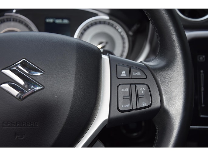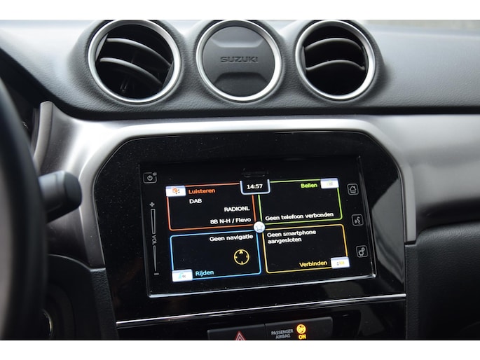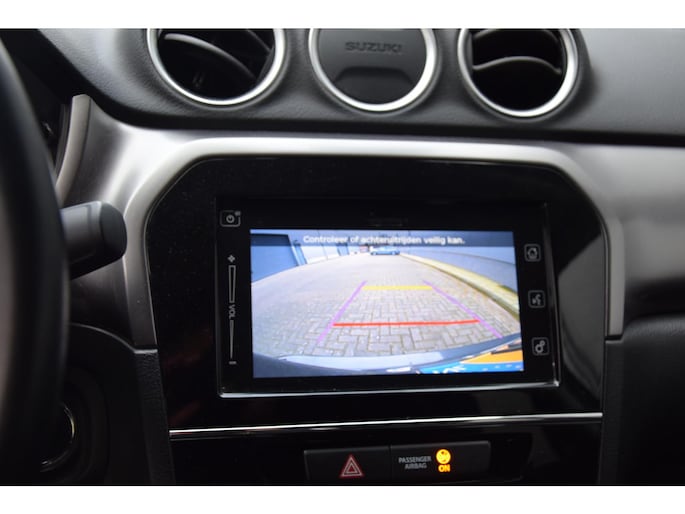 Kommaar-kommaar-kommaar, aldus de achteruitrijcamera. Iedere centimeter vrije ruimte komt haarscherp in beeld. Schadevrij inparkeren maar! Met adaptive cruise control houdt deze auto automatisch afstand tot uw voorligger. In deze Vitara vindt u schakelaars op het stuur om het audiosysteem met dab-ontvangst te bedienen. De achteropkomend verkeer waarschuwing is een mooie veiligheidsoptie, die middels sensoren in de gaten houdt wat er onderweg achter u gebeurt. Dankzij electronic climate control is het interieur behaaglijk warm of verfrissend koel. Deze Suzuki is voorzien van regensensor, lederen stuur, centrale deurvergrendeling met afstandsbediening, bagage afdekhoes en boordcomputer.