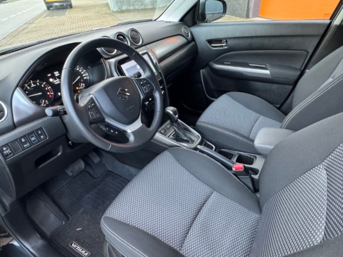 Het unieke van Japanse auto's als deze Suzuki Vitara is dat ze zo goed doordacht zijn. Ieder onderdeel is doorontwikkeld, maar tegelijk is deze auto meer dan de optelsom van al zijn onderdelen. Deze auto biedt stijl, klasse maar bovenal kwaliteit. De aandrijving komt voor rekening van een benzinemotor en een automatische transmissie. Voorin is het 's winters genieten met de verwarmbare voorstoelen voor zowel bestuurder als bijrijder. Natuurlijk behoren 17 inch lichtmetalen velgen, LED koplampen, donker getint glas achter, in delen neerklapbare achterbank, LED-achterlichten en snelheidsafhankelijke stuurbekrachtiging ook tot de uitrusting van deze complete auto.