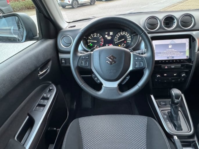 Twijfelen hoeveel ruimte u achter de auto heeft? Met de achteruitrijcamera weet u altijd hoeveel centimeter! Adaptive cruise control is veilig en comfortabel. De snelheidsregelaar houdt automatisch afstand tot het voertuig dat voor u rijdt. Pech oplossen en zelfs voorkomen? Gaat eenvoudig. Via Connected Services heeft u alle data in de hand, gewoon op de smartphone! Nooit meer de weg zoeken en ontspannen arriveren bij uw reisdoel. Met het full map navigatiesysteem zit u veilig en ontspannen in de auto. De sensoren van de achteropkomend verkeer waarschuwing houden zicht op de dode hoeken achter u. Te weinig afstand tot de achterligger? Het systeem geeft direct een signaal. De uitrusting van deze Suzuki is met electronic climate control, schakelpaddles aan het stuur, DAB ontvangst, regensensor, keyless entry en automatisch dimmende binnenspiegel behoorlijk compleet.