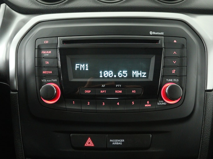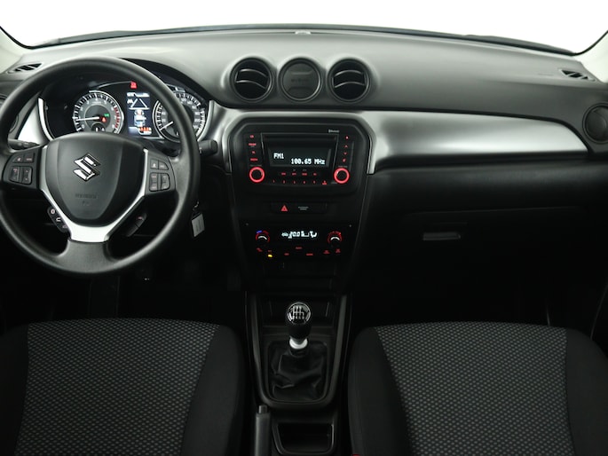 Adaptive cruise control is een comfortabele en veilige optie. Het systeem reguleert de snelheid en houdt automatisch afstand tot jouw voorligger. Ook over je schouder zie je onderweg niet alles wat er aan de achterzijde gebeurt. Daarom heeft deze Suzuki Vitara een achteropkomend verkeer waarschuwing. De electronic climate control zorgt voor een behaaglijk klimaat in de auto. Natuurlijk is een complete auto als deze ook voorzien van sensoren die de omgeving in de gaten houden. Deze Suzuki heeft niet alleen een automatisch inschakelbare verlichting aan boord, maar ook een regensensor. Ook DAB ontvangst, centrale deurvergrendeling met afstandsbediening, bagage afdekhoes, boordcomputer en verstelbaar stuur horen tot de voorzieningen op deze auto.