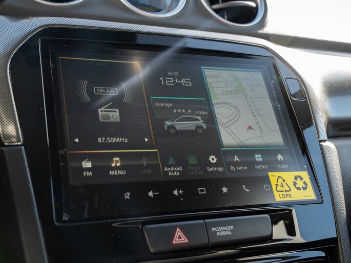 Als bestuurder van deze Suzuki bent u nooit alleen. U wordt onderweg bijgestaan door technologische hulpmiddelen die samen met u de weg in de gaten houden. Als het nodig is, grijpen ze zelfs in, door te remmen of bij te sturen. Een belangrijke bijdrage aan de veiligheid onderweg levert de verkeersbord-detectie. Voorzien van het Lane-keeping systeem. Ofwel: blijf automatisch in je baan. Op een kop-staartbotsing zit niemand te wachten. Daarom is de forward collision warning onderweg constant alert en berekent via een sensor de veilige afstand tot voorliggers. Bovenop deze veiligheidsfeatures heeft deze Suzuki bovendien dodehoekdetectie, accident avoidance system, hill hold functie, brake assist, vermoeidheidsherkenning en bandenspanningcontrolesysteem.