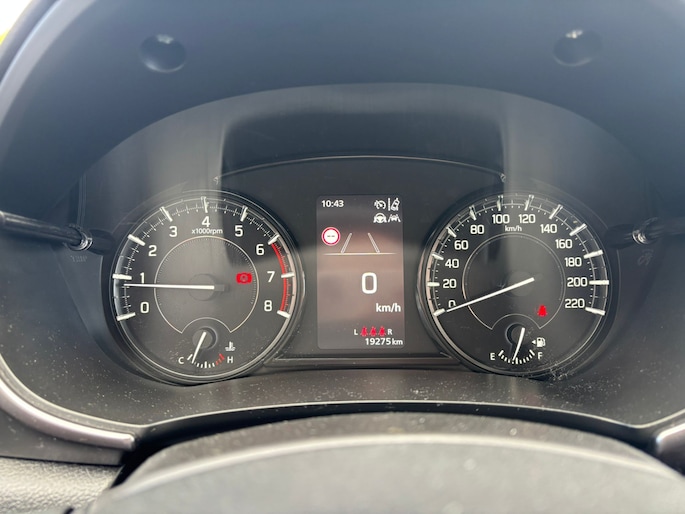 Deze Suzuki biedt u niet alleen comfort en rijplezier, maar ook veiligheid. Actieve veiligheidssystemen houden voor u de weg in de gaten en reageren op onvoorziene situaties voordat u dat kunt. De actuele snelheidslimiet, een inhaalverbod en andere verkeersborden; de verkeersborddetectie ondersteunt u tijdens elke rit. Een camera houdt de juiste koers binnen de rijstrook in de gaten en het Lane-keeping systeem corrigeert bij afwijkingen. Forward collision warning is een automatisch waarschuwingssysteem dat direct in werking treedt bij gevaar voor een kop-staartbotsing. Verder is deze auto uitgerust met dodehoekdetectie, hill hold functie, brake assist, vermoeidheidsherkenning en bandenspanningcontrolesysteem.