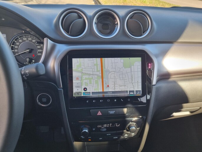 Kommaar-kommaar-kommaar, aldus de achteruitrijcamera. Iedere centimeter vrije ruimte komt haarscherp in beeld. Schadevrij inparkeren maar! Met adaptive cruise control houdt deze auto automatisch afstand tot uw voorligger. Als u 'm vraagt 'hoe gaat het?' geeft deze auto zelf het antwoord. Via de app op uw smartphone. U checkt de meters waar u maar wilt, of activeert diverse functies alvast. Je weet altijd waar je moet zijn, dankzij het full map navigatiesysteem. Radarsensoren aan de achterkant van de auto zorgen voor een achteropkomend verkeer waarschuwing als de afstand tot het verkeer achter te klein wordt. U bent in deze Suzuki ook voorzien van electronic climate control, DAB ontvangst, regensensor, keyless entry, bagage afdekhoes en boordcomputer.