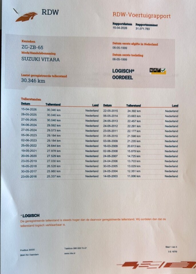 Kilometerstand gecontroleerd