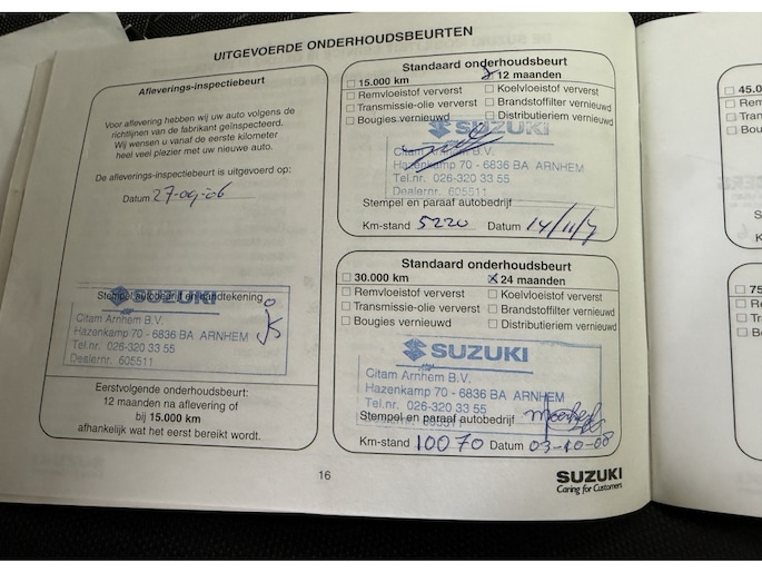 Onderhoudsboekjes: Aanwezig