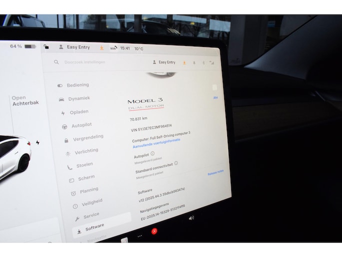 Adaptive cruise control houdt de ingestelde snelheid vast en houdt afstand tot het voertuig voor u. De jeugd is niet los te maken van hun smartphone, en dat zie je ook aan deze jonge auto. Via een speciale app staat u overal en altijd in contact met uw vierwieler. Superhandig! De high-end technologie van het high performance audiosysteem staat garant voor geluid van het hoogste niveau. Electronic climate control regelt volautomatisch de temperatuur. U kiest de gewenste temperatuur en het systeem doet de rest. Zoals u weet, liggen de autosleutels altijd onderin de boodschappentas die u sjouwt. Geen probleem bij deze Tesla Model 3. De token in uw jaszak wordt van dichtbij gesignaleerd door de keyless entry en alle sloten gaan automatisch open. Deze Tesla is voorzien van dashboard met spraakbediening, full map navigatiesysteem, parkeerassistent en automatisch dimmende buitenspiegels.