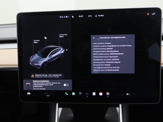 -Een van de beste audio-systemen die standaard geleverd worden in welke auto dan ook (Tesla High Performance Audio);