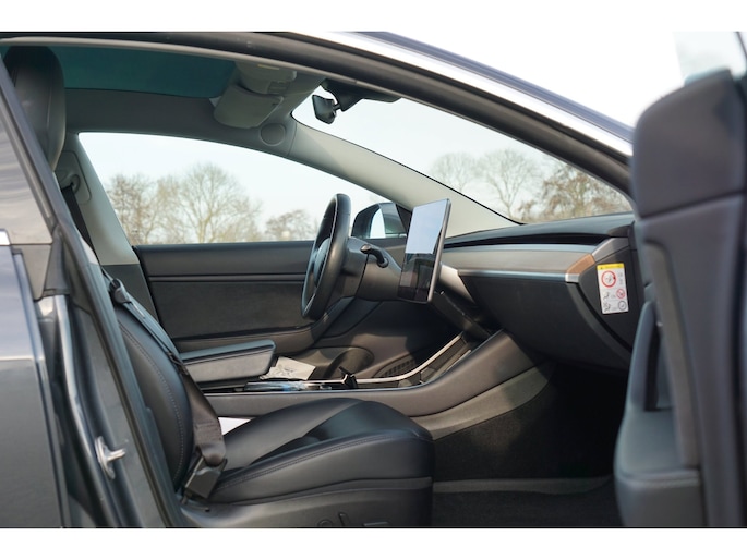 Ontspannen en zorgeloos autorijden, dat doet u met deze Tesla Model 3. Zit u goed? De stoelen zijn eenvoudig instelbaar dankzij de elektrische bediening met geheugen. Geniet van de lichtinval en het uitzicht van het grote glazen panoramadak. Deze Tesla Model 3 heeft eigenlijk alles, zelfs een verwarmde achterbank. Bij de zeer complete uitrusting van deze auto behoren ook 18 inch lichtmetalen velgen en in delen neerklapbare achterbank.