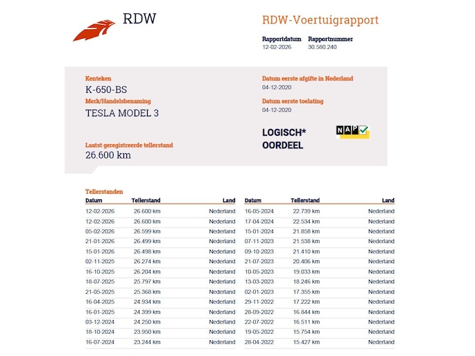 Kilometerstand gecontroleerd