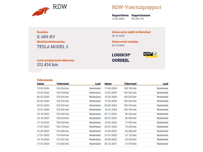 Kilometerstand gecontroleerd