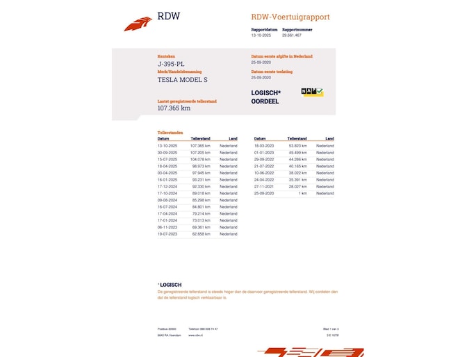 Kilometerstand gecontroleerd
