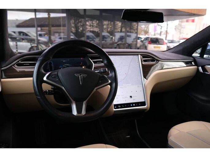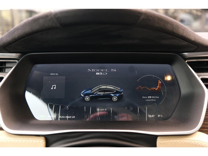 Nette, goed onderhouden en rijk uitgeruste Tesla Model S 85D Base uit 2015. Deze 85D is o.a. voorzien van: Free supercharge, audio installatie premium, autopilot, stuurwielverwarming, stoelverwarming (voor en achter), standkachel, keyless, panoramadak(schuif/-kantelfunctie is defect), CCS update en achteruitrijcamera. Uitgevoerd in Blue Metallic met beige lederen sport-comfortinterieur.