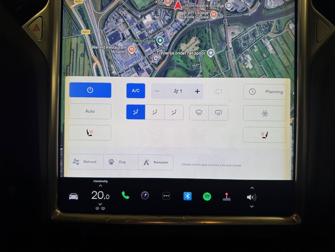 De achteruitrijcamera maakt inparkeren gemakkelijker dan ooit. Tijdens de rit bedient u het audio-installatiesysteem en het navigatiesysteem met de knoppen op het stuur of met uw stem. De electronic climate control zorgt voor een prettige binnentemperatuur. De automatisch inschakelbare verlichting en regensensor zorgen dat onderweg automatisch de verlichting en de ruitenwissers worden ingeschakeld. Daarmee nemen ze u veel werk uit handen. De cruise control levert een mooie, gelijkmatige koers. Dat rijdt prettig. De uitrusting van deze Tesla is met keyless entry, automatisch dimmende buitenspiegels, lederen stuur en boordcomputer behoorlijk compleet.