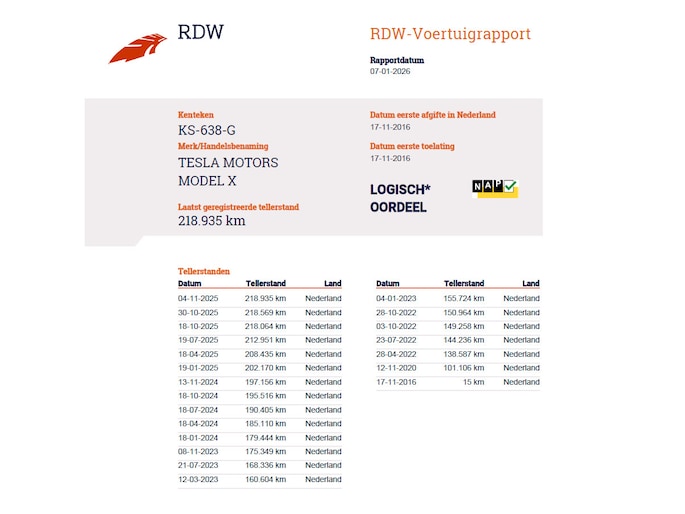Kilometerstand gecontroleerd