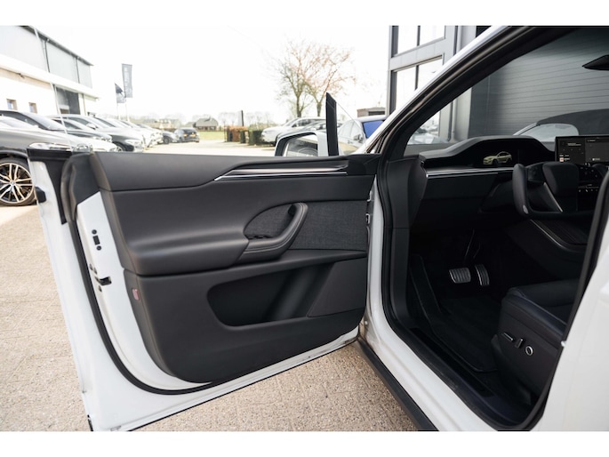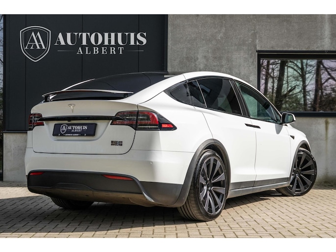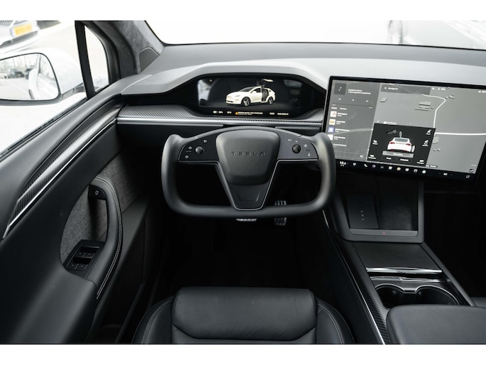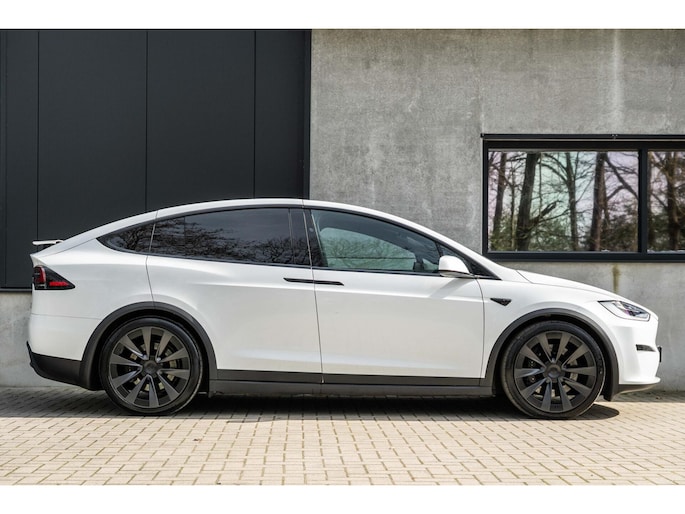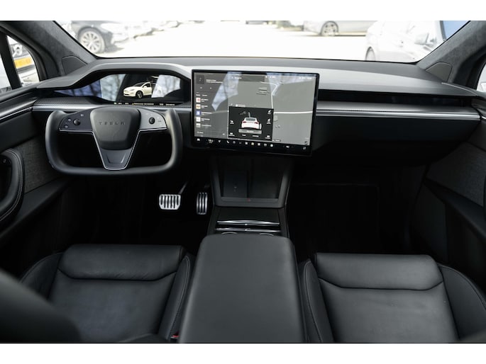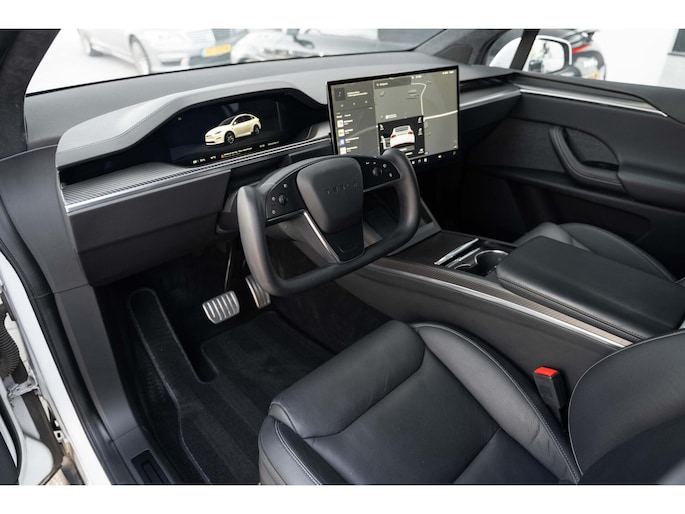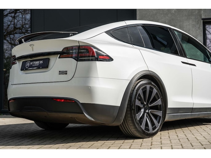 Tesla Model X Plaid met 1020pk, 6-Zits interieur met Carbon afwerking, Stoelverwarming en ventilatie op de voorstoelen, Stoelverwarming op alle zitplaatsen, Elektrisch verstelbare voorstoelen met Memoryfunctie, Panoramische voorruit, 360 graden camera-systeem, Premium Audio met 22 luidsprekers, 22'' Turbine lichtmetalen velgen, Adaptieve luchtvering, Trekhaak, Yoke stuurwiel, Keyless Entry via smartphone, Tri-Zone Climate Control, Entertainment-scherm achterin, Falcon Wing achterdeuren en nog veel meer.....