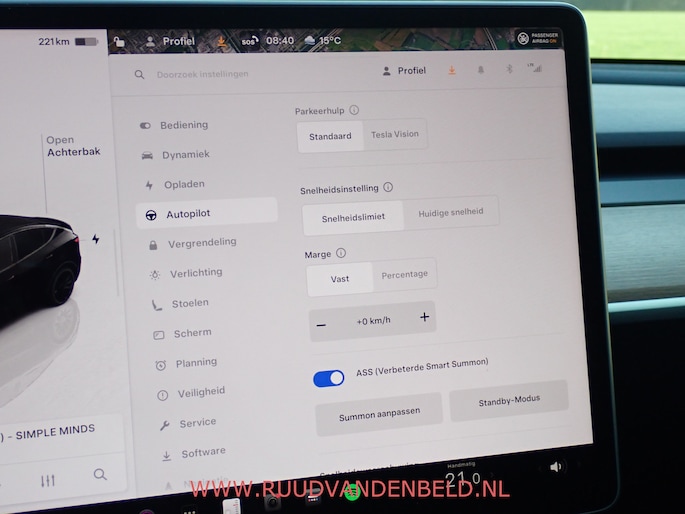 SMART SUMMON (automatisch in/uit parkeren + verrijden via TESLA app)
