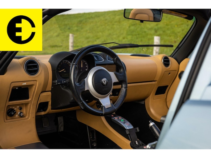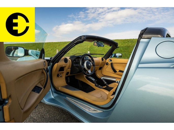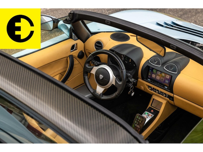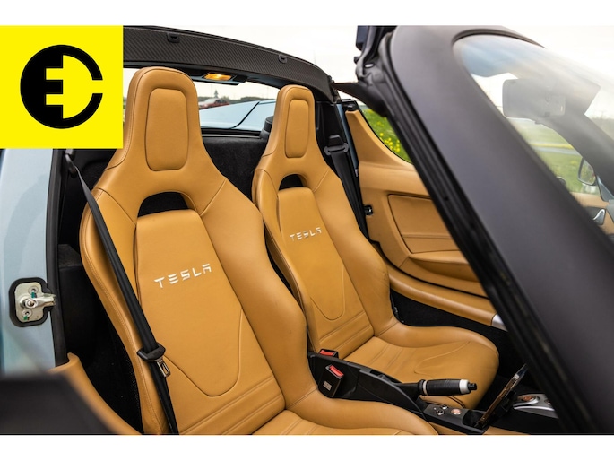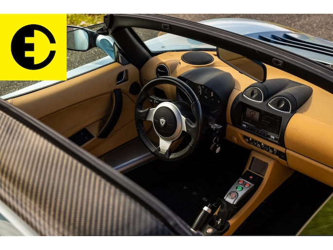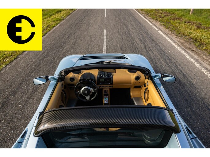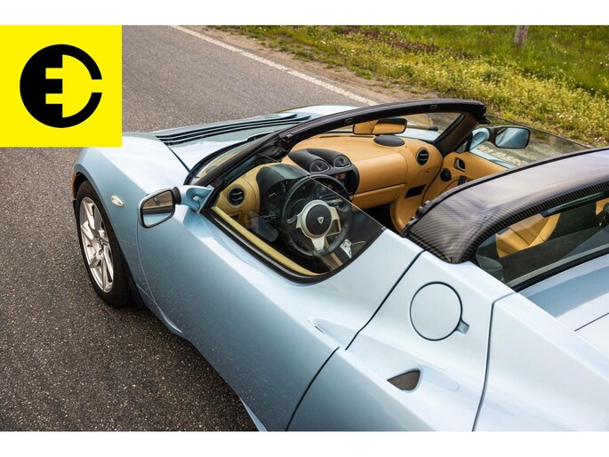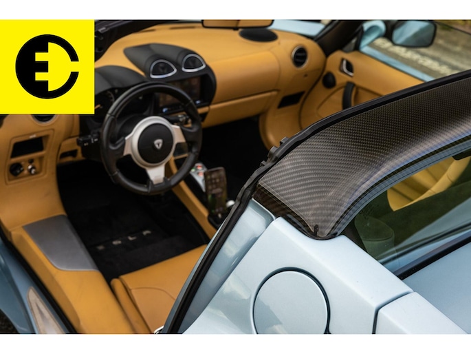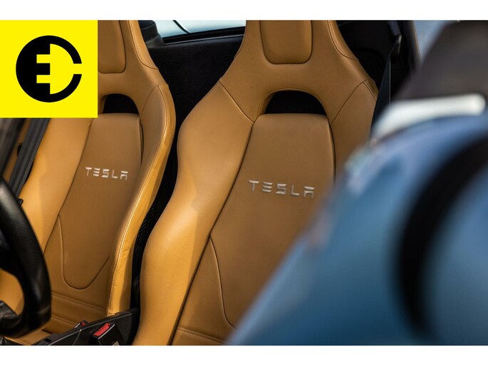 This Tesla Roadster 2.5 Roadster delivered in Glaceer Blue is an amazing car and is in top condition. The car gets a chic yet sporty look through the TAN Leather interior. As for the spes of the car the following; the soft top has renewed cables, the Roadster is equipped with a high-gloss carbon hardtop, an after market Audio system with subwoofer from Alpine with Apple CarPlay and DAB +, equipped with OVMS tracking system and control via App. The car is completely original and has been overhauled where necessary.